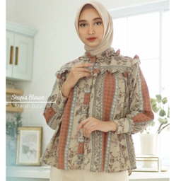Blouse Tanisha Berbaahan Katun Roma dengan akses unik dibagian dada dan full kancing dengan dirancang khusus grafir brand. Wudhu friendly juga nih karena dilengkapi kancing di kanan kiri lengan