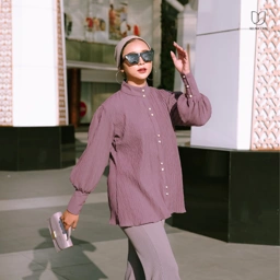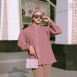 Bambi Blouse terbuat dari Material Plisket dan Crepe premium, terdapat kancing dilengan yang warnanya sama. Terdapat 2 Model untuk Bambi Blouse :